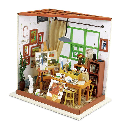 $29.99 $124.99Features: DIY Dolhouse Kit - Art Studio with LED Light (Two lithium button cells excluded- Model: CR2032 Diameter:20MM RT.) Assembled Size: 225*185*190mm With many miniatures, photos and frame, cabinet, table, stools, fabrics, pillows, scissor, m... Read More